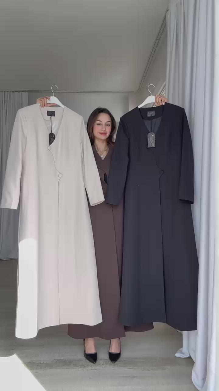 التصميم يتميز بقصة طويلة وأنيقة (Long Blazer) تبرز القوام، مع ياقة عالية كلاسيكية وتفاصيل أزرار ناعمة. يشتمل على جيوب جانبية مدمجة. الخامة مصنوعة من نسيج عالي الجودة وذو قوام متماسك، يضمن مظهراً احترافياً مع توفير الراحة القصوى. القصة مصممة بعناية فائقة لتوفير مظهر أنيق يجمع بين الموضة والعملية، وتُعد إضافة ضرورية تعكس اختياراتك الراقية والفريدة
