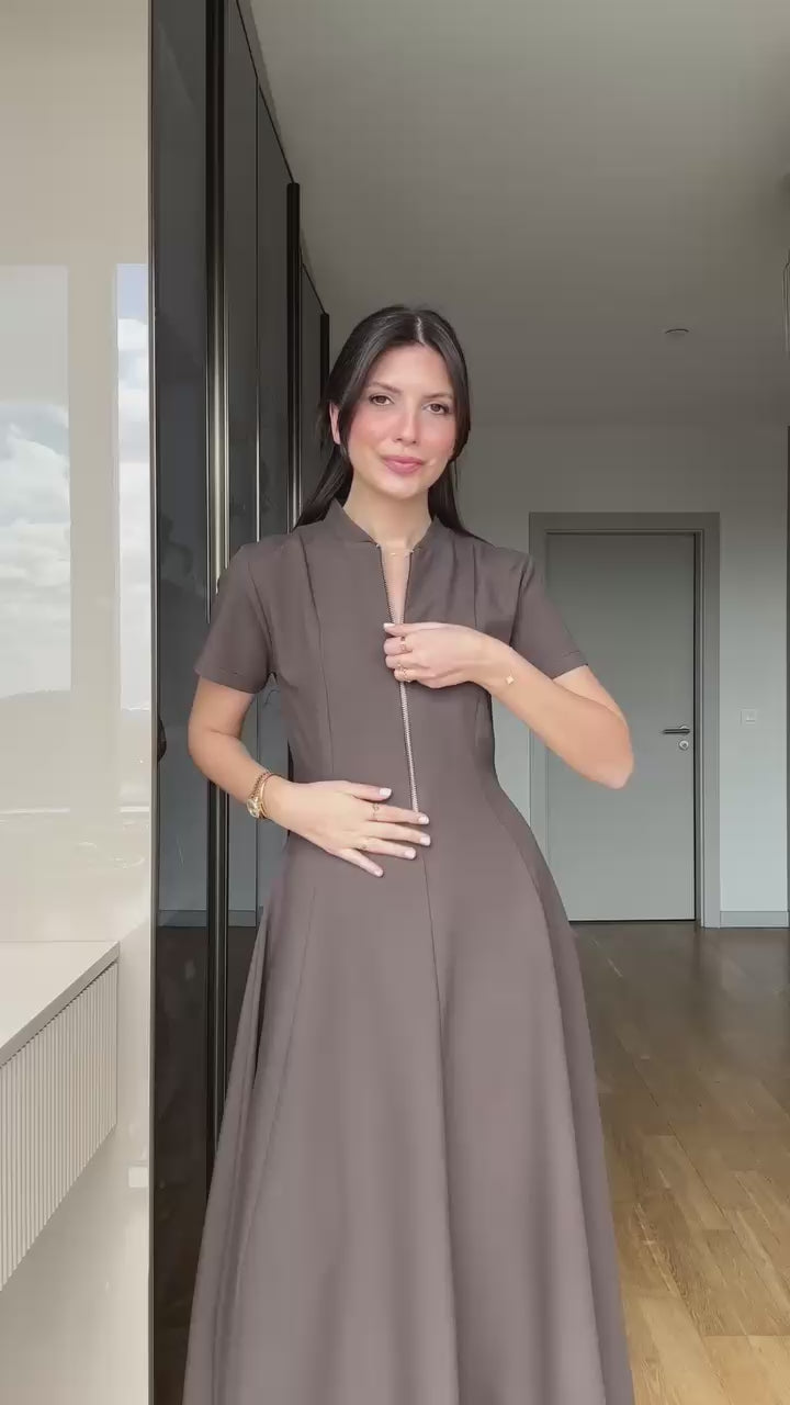 فستان نص كم سحاب