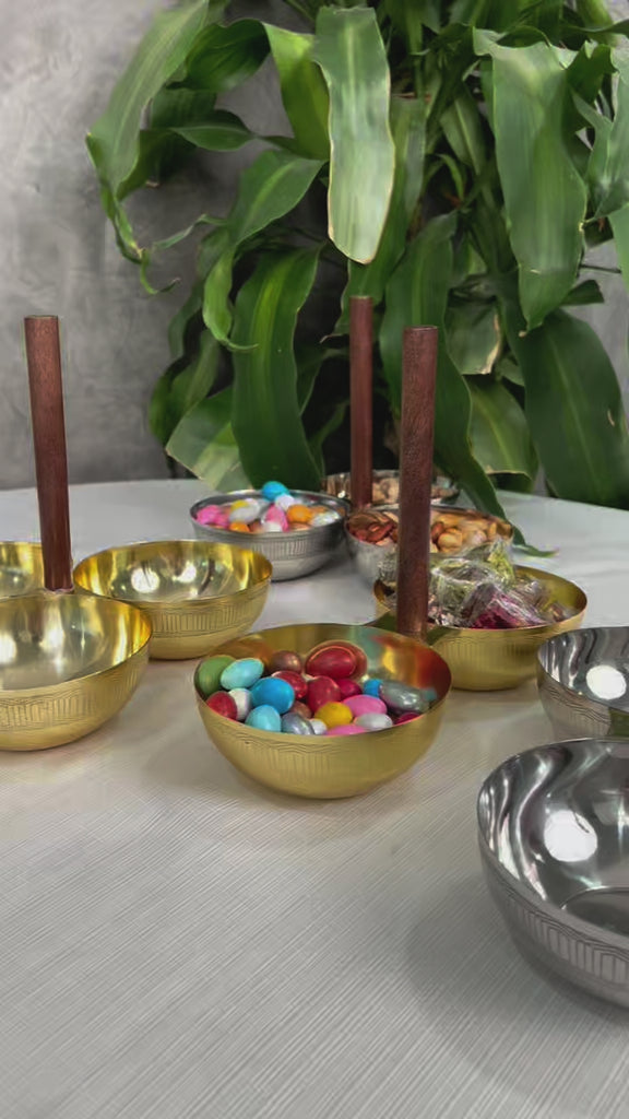 وعاء ثلاثى حامل خشبى يتكون من ثلاث اوعية صغيرة مستديرة مثبتة على قاعدة خشبية الاوعية مزخرفة بنقوش دقيقة تعطيها مظهرا كلاسيكيا متوفر بللونين ( الذهبى... قراءة المزيد,,