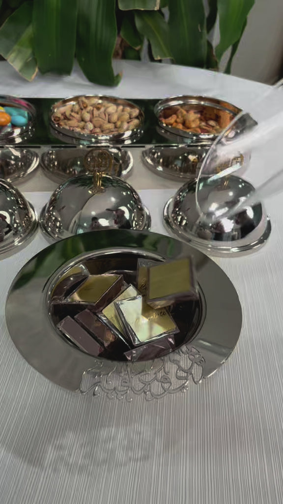 صينية تقديم تتميز الصينية بتصميم كلاسيكى و أنيق مع ثلاث أوعية دائرية الشكل ذات أغطية مستديرة مصنوعة من الاستانلس ستيل عالى الجودة مما يجعلها متينة و عمرها افتراضى طويل والقاعدة تتميز بتصميم مزخرف يضيف لمسة فنية الى الصينية ( هنى و عافية ) تستخدم هذة الصينية لتنظيم المائدة و تقديم الاطعمة بشكل جذاب و تعد هذة الصينية هدية مثالية للاصدقاء و العائلة