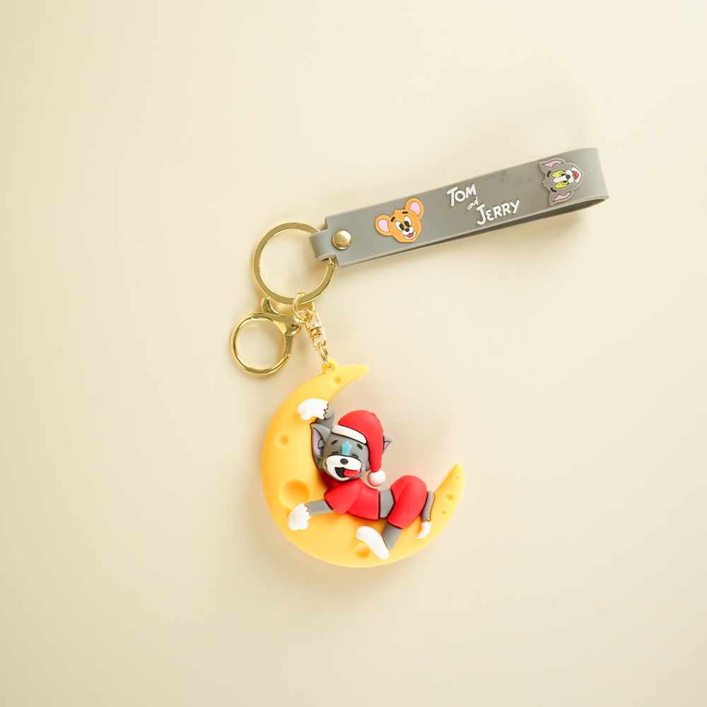 ميدالية مفاتيح توم وجيري بتصميم القمر وشخصية توم بزي العيد