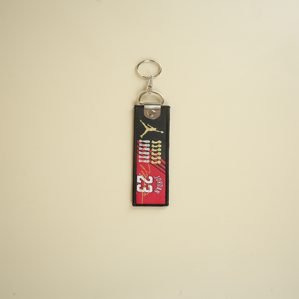 ارتقِ بإطلالتك مع هذه الميدالية المميزة المستوحاة من أسطورة كرة السلة مايكل جوردان! تأتي بتصميم عصري مزيّن برقم 23 الشهير وشعار جوردان الأيقوني، بالإضافة إلى ألوان ديناميكية تلفت الأنظار. مصنوعة من خامة قماشية عالية الجودة مع حلقة معدنية متينة لتثبيت المفاتيح أو تعليقها على الحقيبة. مثالية لمحبي الرياضة والستايل العصري.