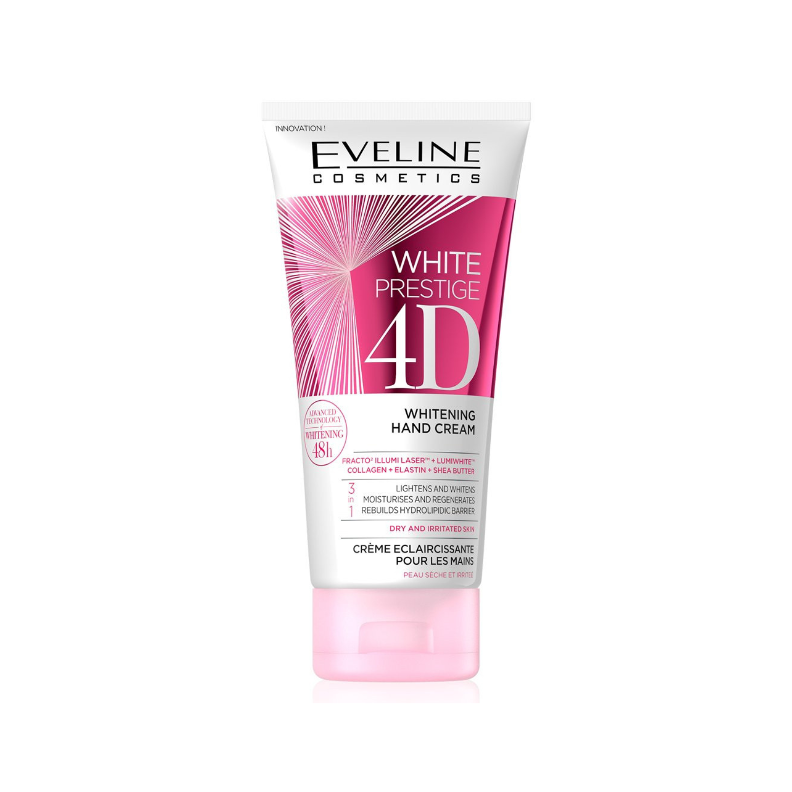 امنحي يديكِ عناية شاملة مع كريم تفتيح اليدين Eveline 4D Whitening Hand Cream 3 in 1، المدعّم بتقنية Lumiskin 4D White Complex المتطورة لتفتيح البشرة وتقليل التصبغات بشكل فعّال.