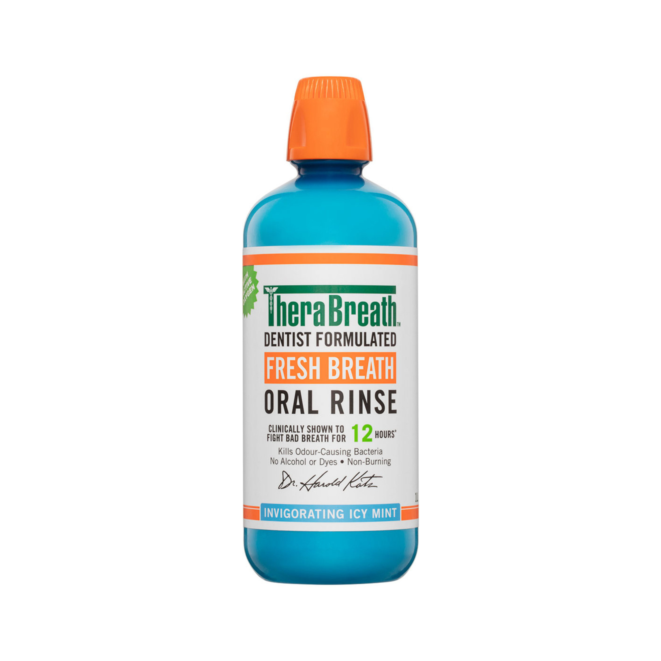 - تخلّص من رائحة الفم الكريهة فورًا مع غسول الفم TheraBreath بنكهة النعناع المثلج. تركيبة طبيعية، خالية من الكحول والنكهات الاصطناعية، تدعم صحة اللثة وتمنحك نفسًا منعشًا يدوم 24 ساعة. نباتي، خالٍ من الغلوتين، ومناسب لمرضى السكري.