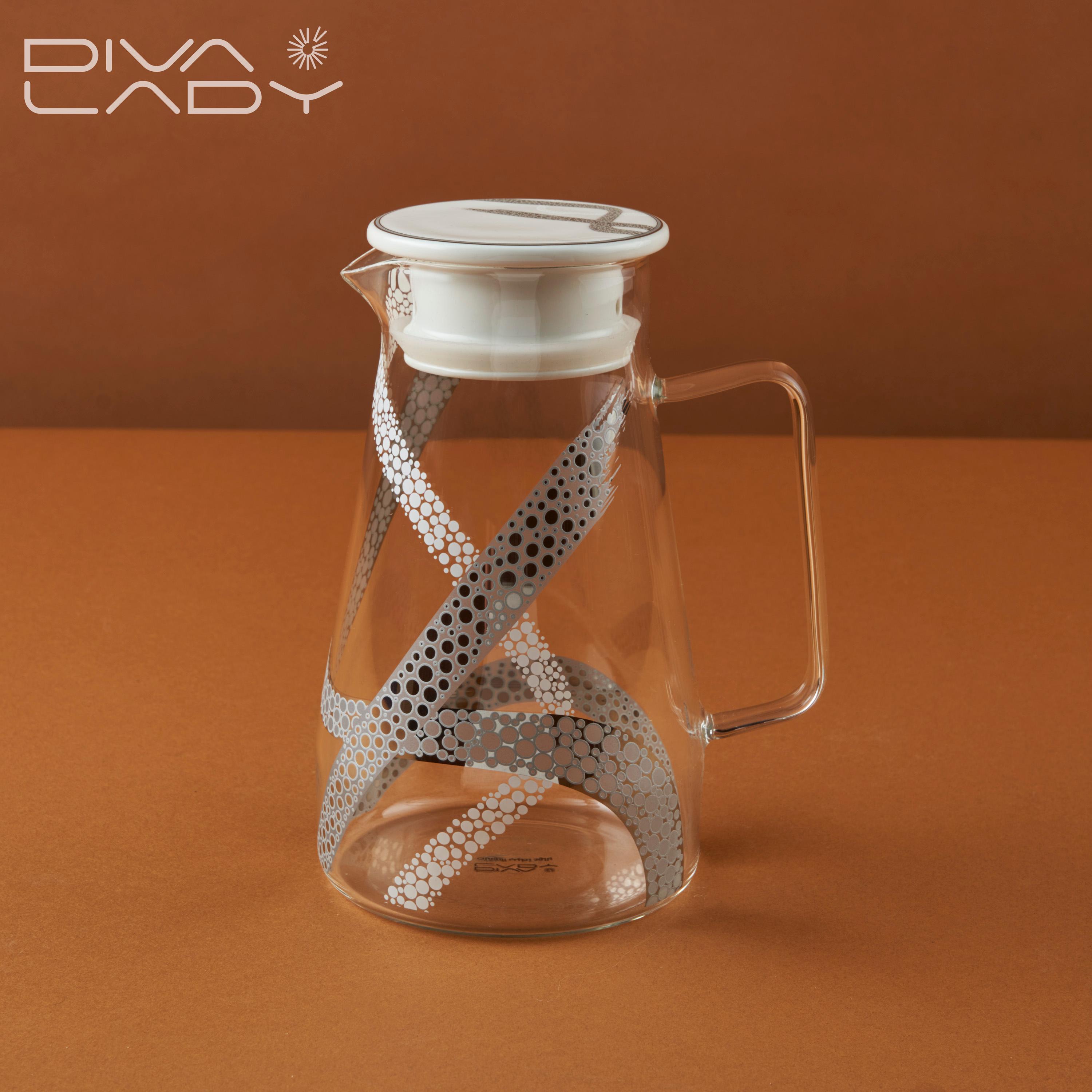 استمتع بتقديم المشروبات بأسلوب راقٍ مع إبريق بسعة 1400 مل. تصميمه الزجاجي الشفاف فاخرة وتفاصيل هندسية ذهبية، مع غطاء محكم يحافظ على النكهة والنظافة.