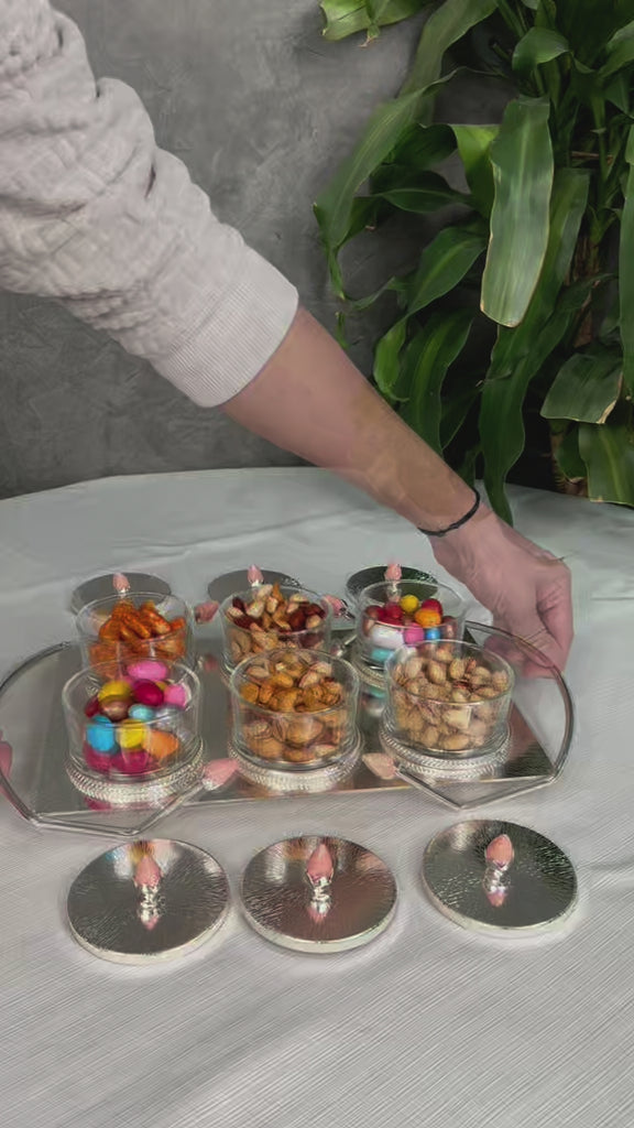 مزيج من التصميم الحديث والمعاصر يجلب إحساس الدفء إلى طاولة طعامك منتج مصنوع من الزجاج عالي الجودة، كما أنه متين ومقاوم للحرارة وعملي للغاية مع صينية من الاستالس عالى الجودة المعالج ضد الصدا