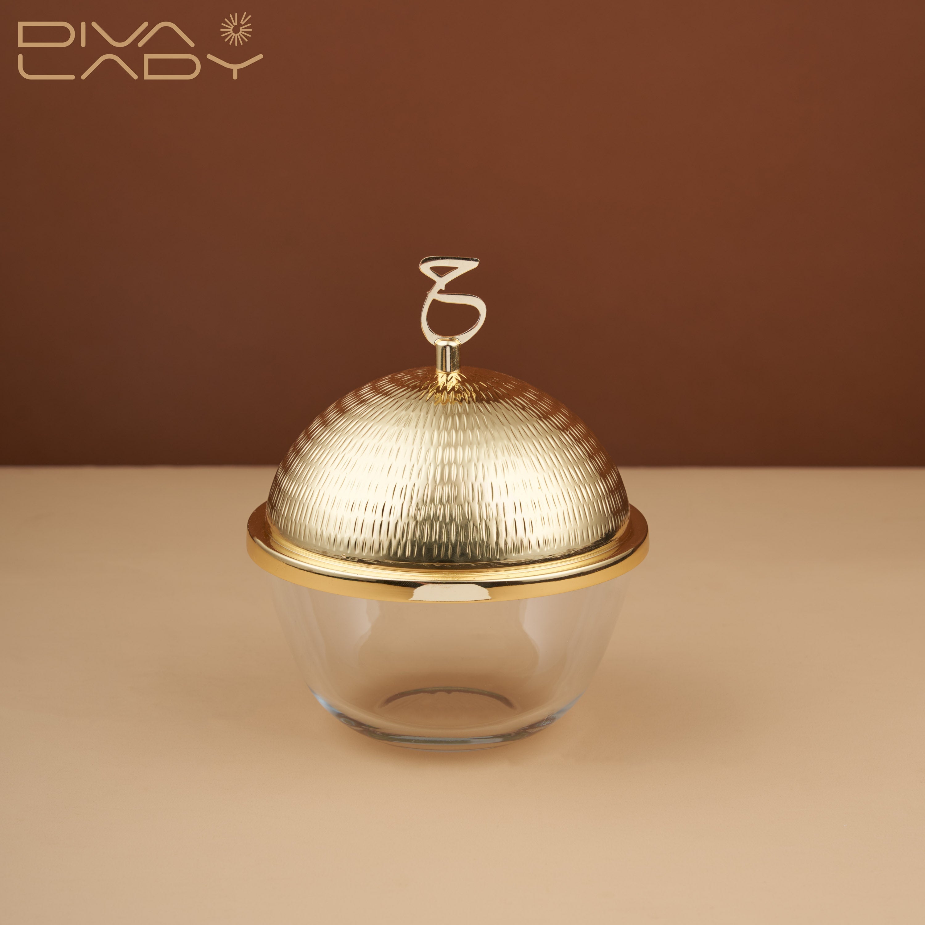 تمرية مصنوعة من زجاج والاستيل باللون الذهبي تضيف لمسة  فاخرة إلى مائدتك يأتي هذا الصحن بتصميم متميز وجودة عالية. استمتع بتقديم التمور بأناقة خاصة خلال الشهر الكريم. تعد هذة التمرية  اختيار مثالي لإضافة لمسة ساحرة الى مائدة طعامك