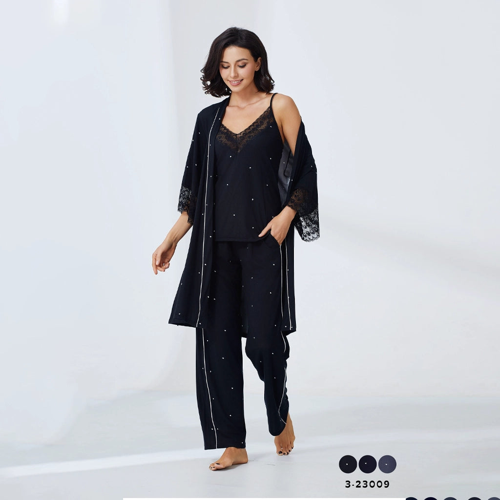 انغمسي في تجربة نوم هانئة وعميقة بالحصول على الطقم الرائع هذا. مصنوع بخامة عالية الجودة يوفّر مستويات قصوى من الراحة طوال الليل، ويتميز بتصميم أنيق يجمع بين الموضة والعملية، ويُعد إضافة ضرورية إلى خزانتك الأساسية تعكس اختياراتك الراقية والفريدة.