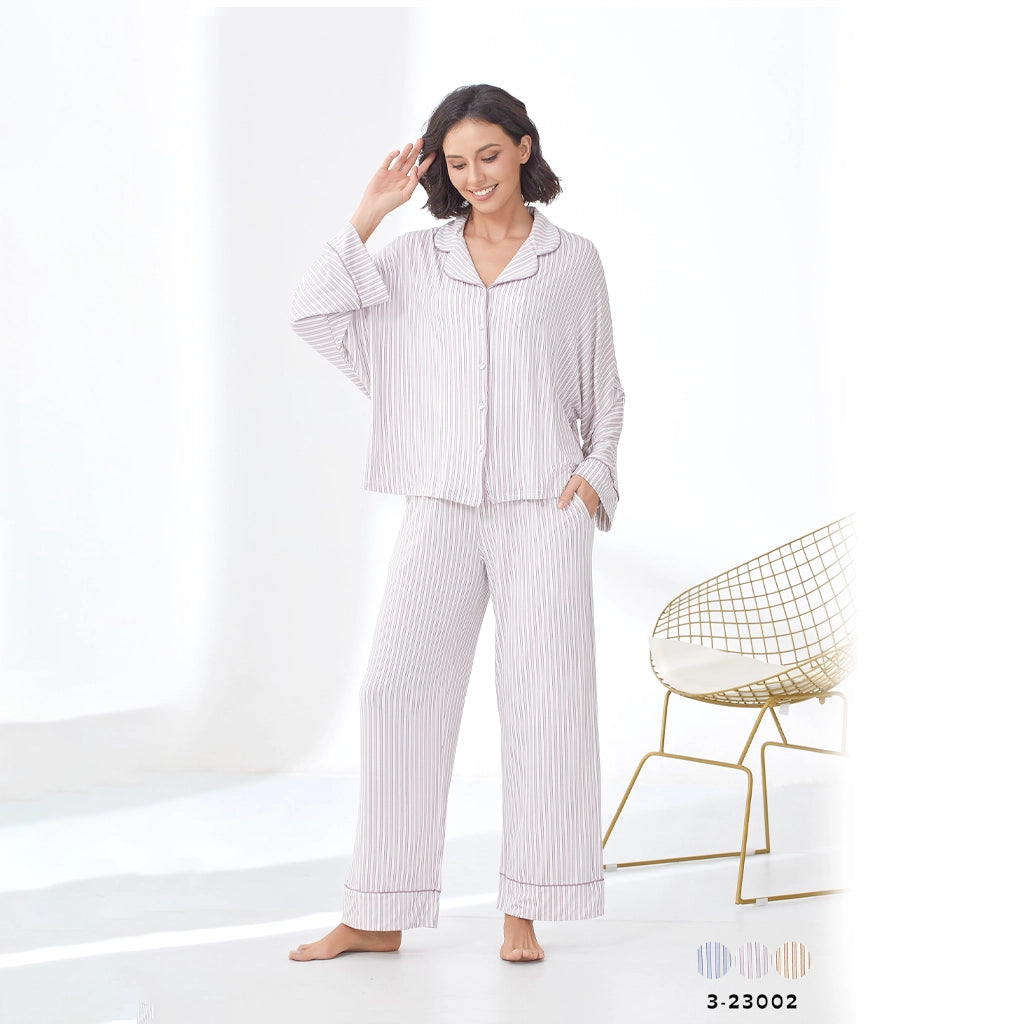 تمتعي بالدفء والراحة مع طقم البيجاما الرائع هذا. مصنوع من خامات عالية الجودة ، ويوفر أقصى درجات الراحة والتهوية. تصميمه كلاسيكي، ويأتي بأكمام طويلة، ومثالي لنوم مريح أثناء الليل