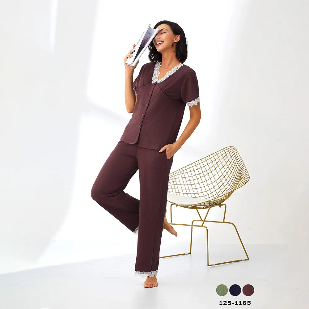 أضيفي هذا الطقم الرائع إلى ملابسك المنزلية، مكون من بلوزة وبنطلون بيجاما، ومزين بطبعات جميلة