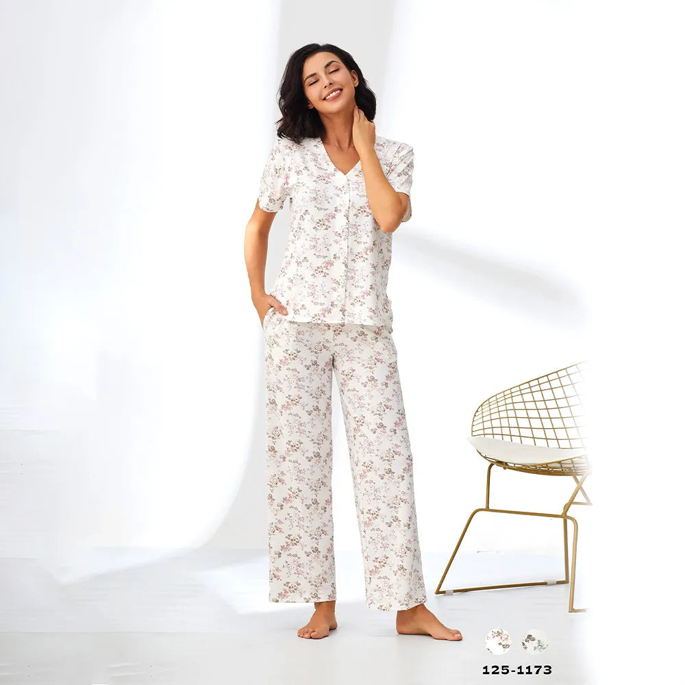 أضيفي هذا الطقم الرائع إلى ملابسك المنزلية، مكون من بلوزة وبنطلون بيجاما، ومزين بطبعات جميلة