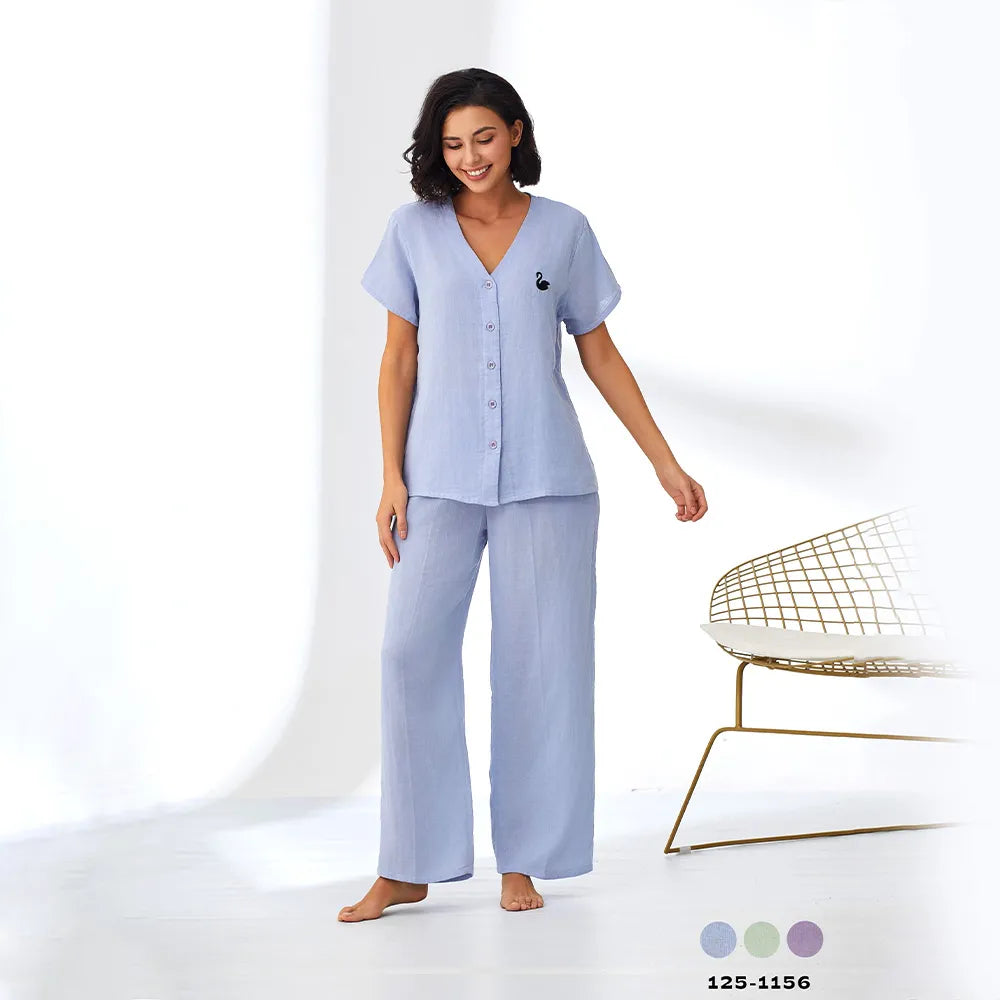 أضيفي هذا الطقم الرائع إلى ملابسك المنزلية، مكون من بلوزة وبنطلون بيجاما، ومزين بطبعات جميلة