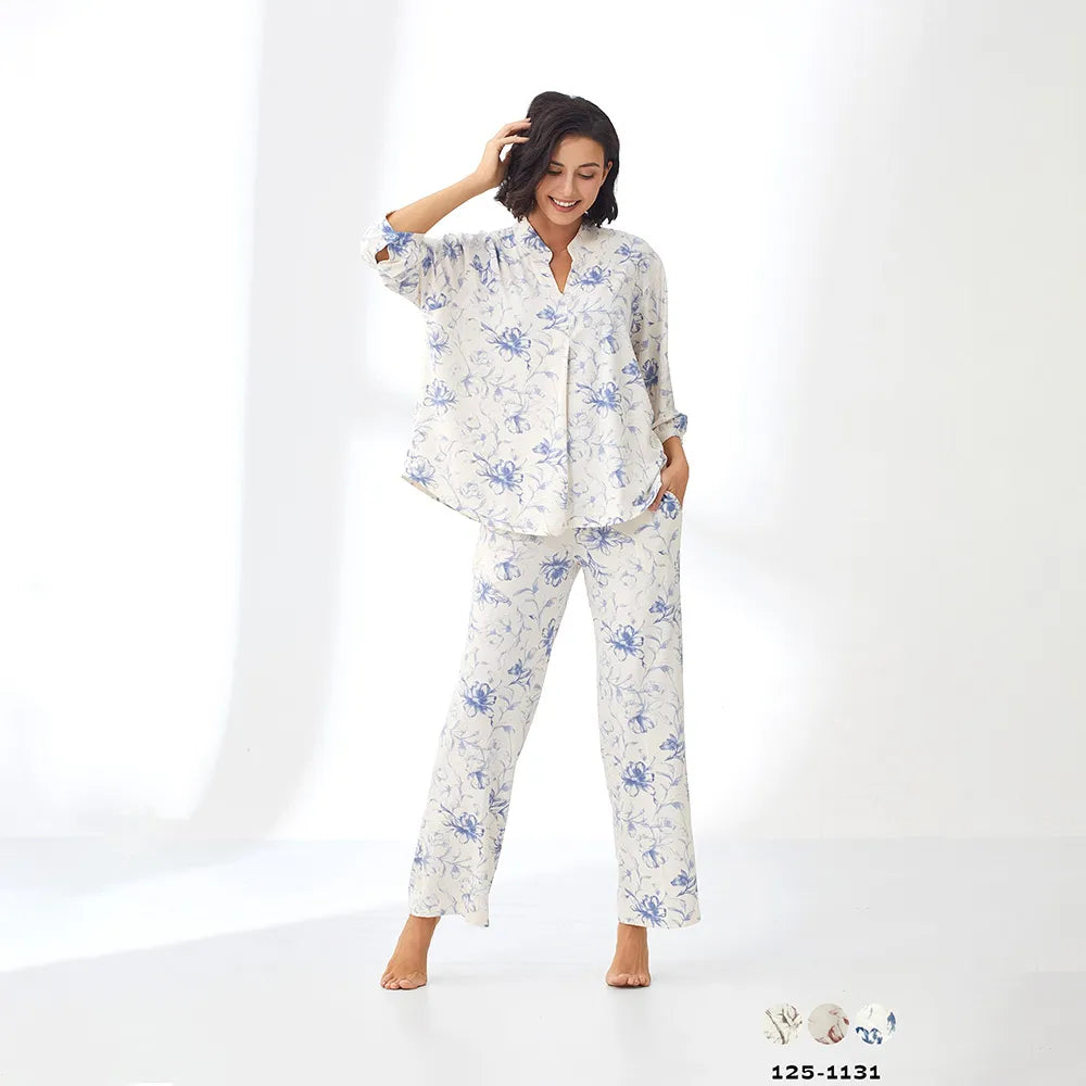 أضيفي هذا الطقم الرائع إلى ملابسك المنزلية، مكون من بلوزة وبنطلون بيجاما، ومزين بطبعات جميلة