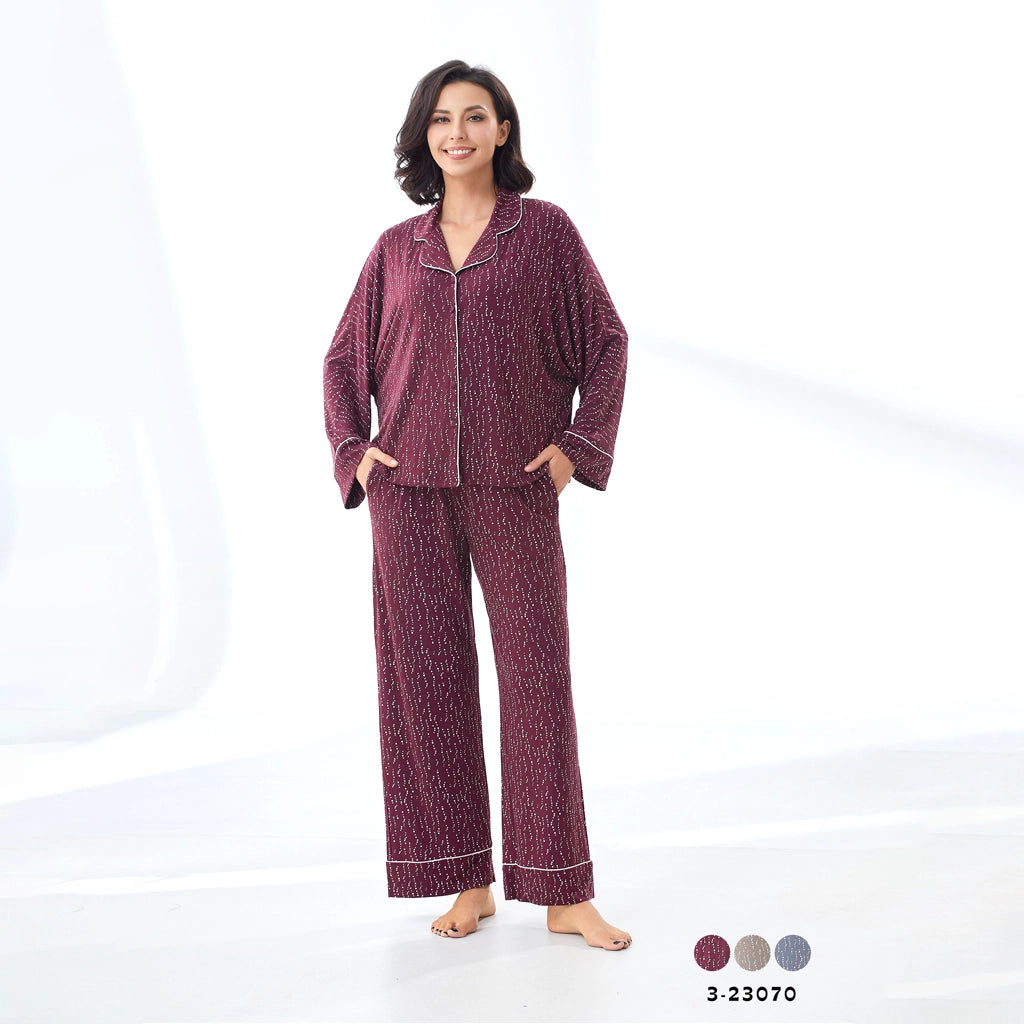 انغمسي في تجربة نوم هانئة وعميقة بالحصول على الطقم الرائع هذا. مصنوع بخامة عالية الجودة يوفّر مستويات قصوى من الراحة طوال الليل، ويتميز بتصميم أنيق يجمع بين الموضة والعملية، ويُعد إضافة ضرورية إلى خزانتك الأساسية تعكس اختياراتك الراقية والفريدة.