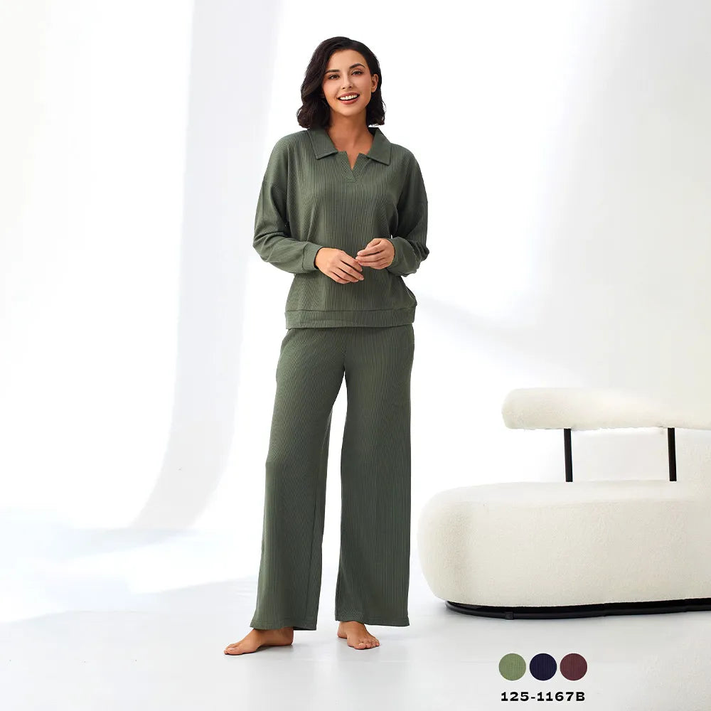 أضيفي هذا الطقم الرائع إلى ملابسك المنزلية، مكون من بلوزة وبنطلون بيجاما، ومزين بطبعات جميلة