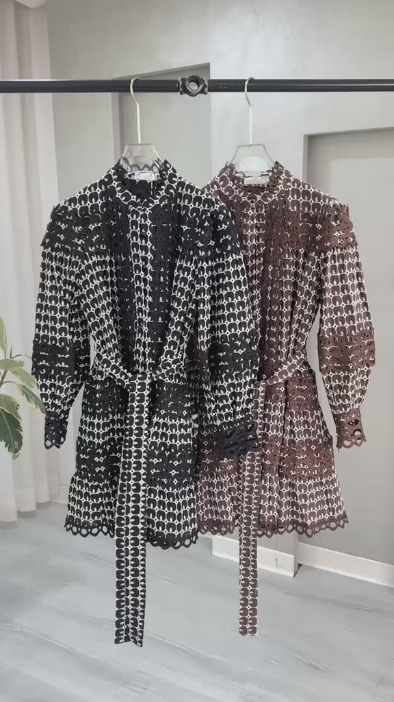 تميّزي بإطلالة أنثوية ناعمة مع هذا الطقم الراقي المكون من قميص بأكمام قصيرة وتنورة طويلة، مزين بلمسات يدوية أنيقة وزخارف على شكل ورود بارزة. التصميم يأتي بخطوط طولية أنيقة وتفاصيل معدنية راقية على الياقة وجيوب التنورة، ليمنحك مظهراً عصرياً وراقياً مثالي للإطلالات اليومية والمناسبات الخفيفة.