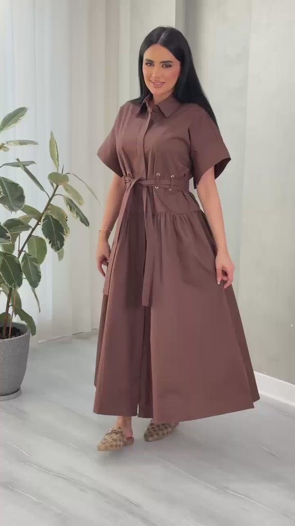 تميّزي بإطلالة أنثوية ناعمة مع هذا الطقم الراقي المكون من قميص بأكمام قصيرة وتنورة طويلة، مزين بلمسات يدوية أنيقة وزخارف على شكل ورود بارزة. التصميم يأتي بخطوط طولية أنيقة وتفاصيل معدنية راقية على الياقة وجيوب التنورة، ليمنحك مظهراً عصرياً وراقياً مثالي للإطلالات اليومية والمناسبات الخفيفة.