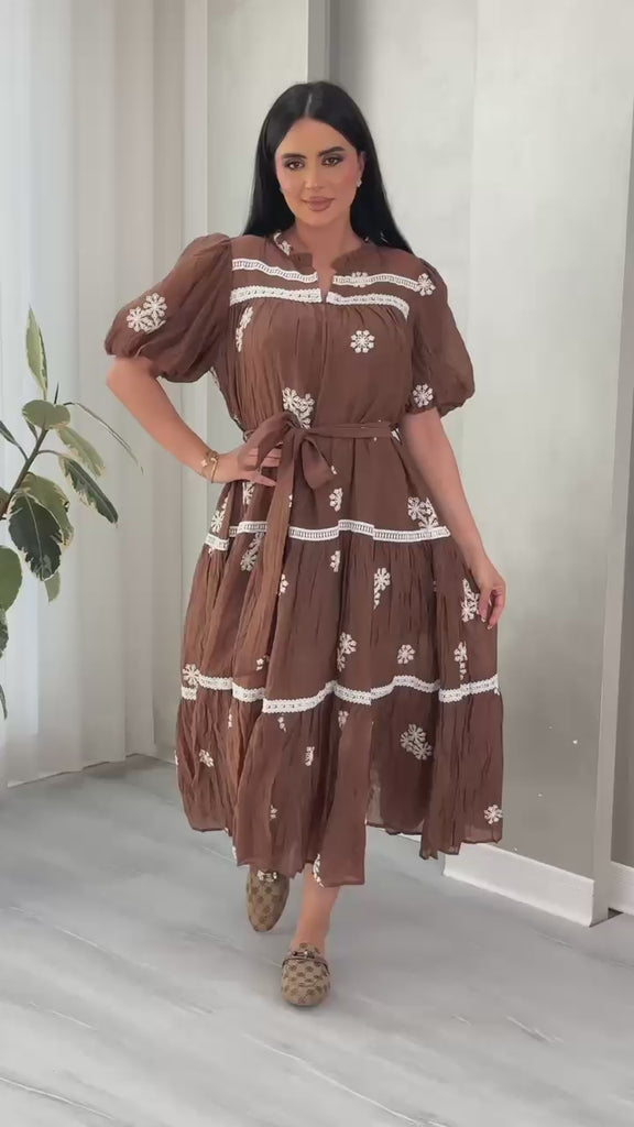 تميّزي بإطلالة أنثوية ناعمة مع هذا الطقم الراقي المكون من قميص بأكمام قصيرة وتنورة طويلة، مزين بلمسات يدوية أنيقة وزخارف على شكل ورود بارزة. التصميم يأتي بخطوط طولية أنيقة وتفاصيل معدنية راقية على الياقة وجيوب التنورة، ليمنحك مظهراً عصرياً وراقياً مثالي للإطلالات اليومية والمناسبات الخفيفة.