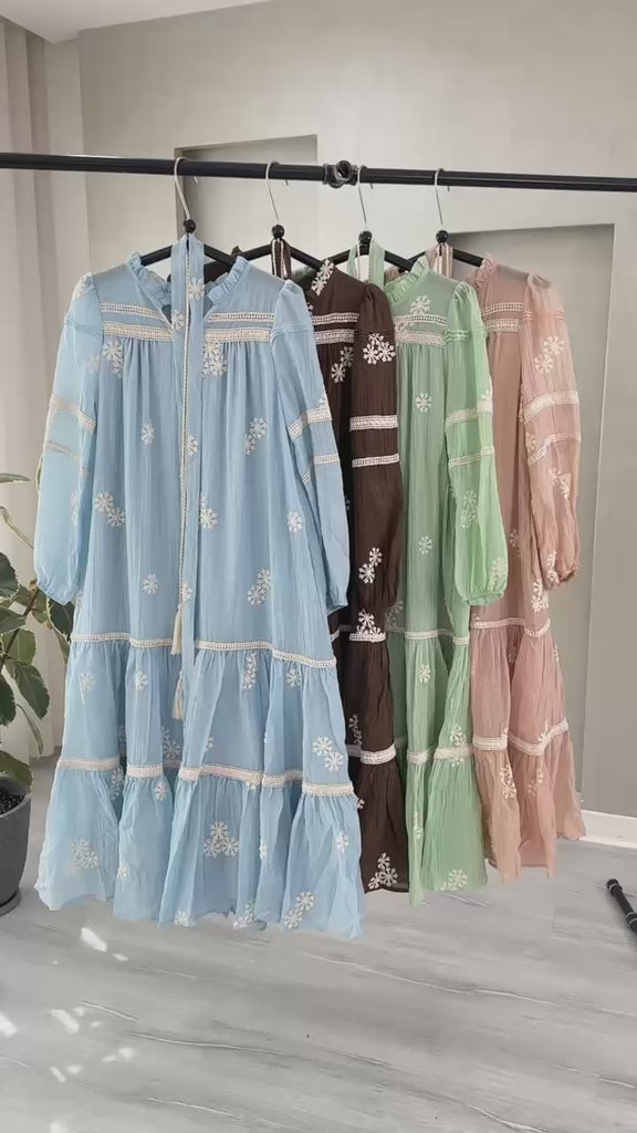 تميّزي بإطلالة أنثوية ناعمة مع هذا الطقم الراقي المكون من قميص بأكمام قصيرة وتنورة طويلة، مزين بلمسات يدوية أنيقة وزخارف... قراءة المزيد,,