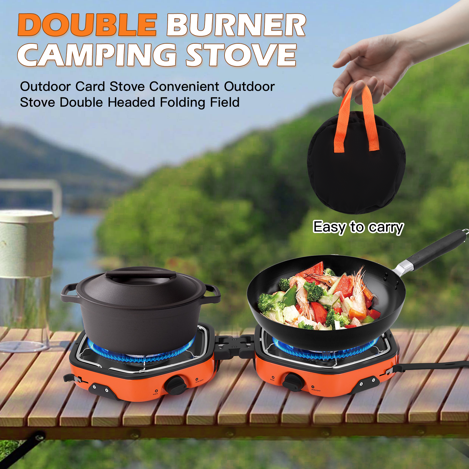 موقد غاز تخييم مزود بشعلتين مع حقيبة حمل