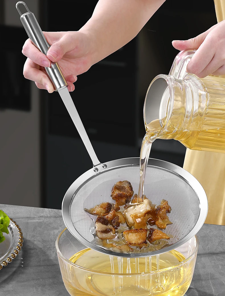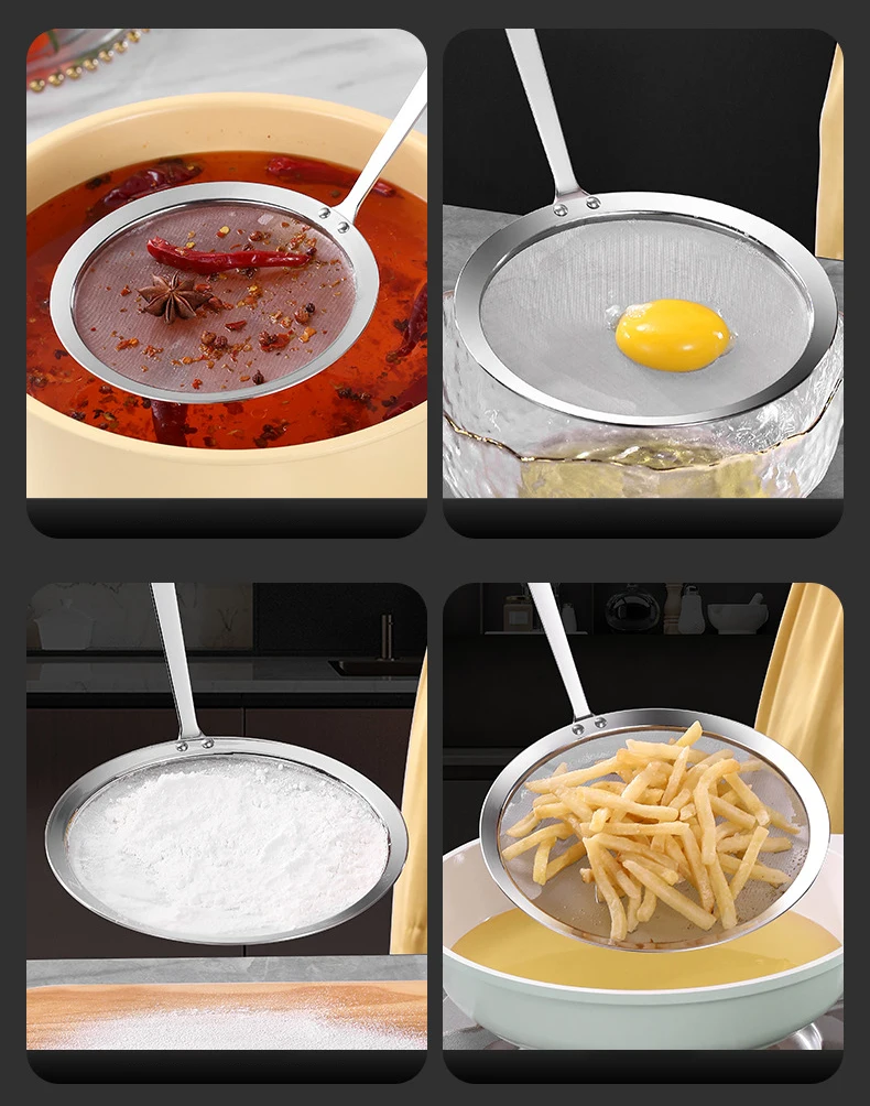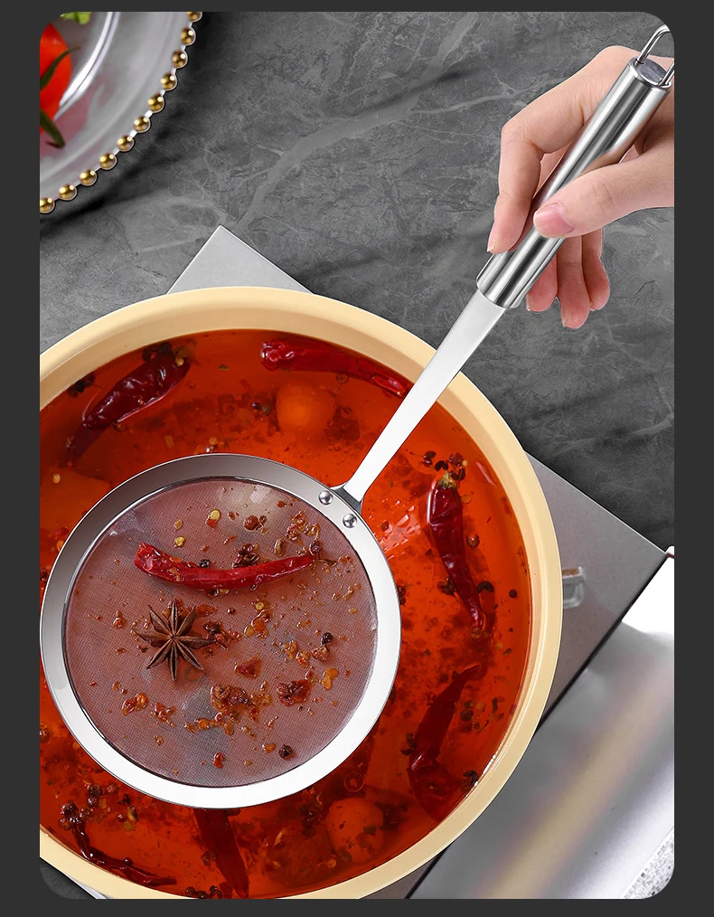 Comfortable Mesh Design our stainless steel strainer spoons are designed with mesh, small and nice, you can use them to filter out some small cellulite, when cooking the food, you will feel comfortable, making your kitchen time more happy and relaxed |