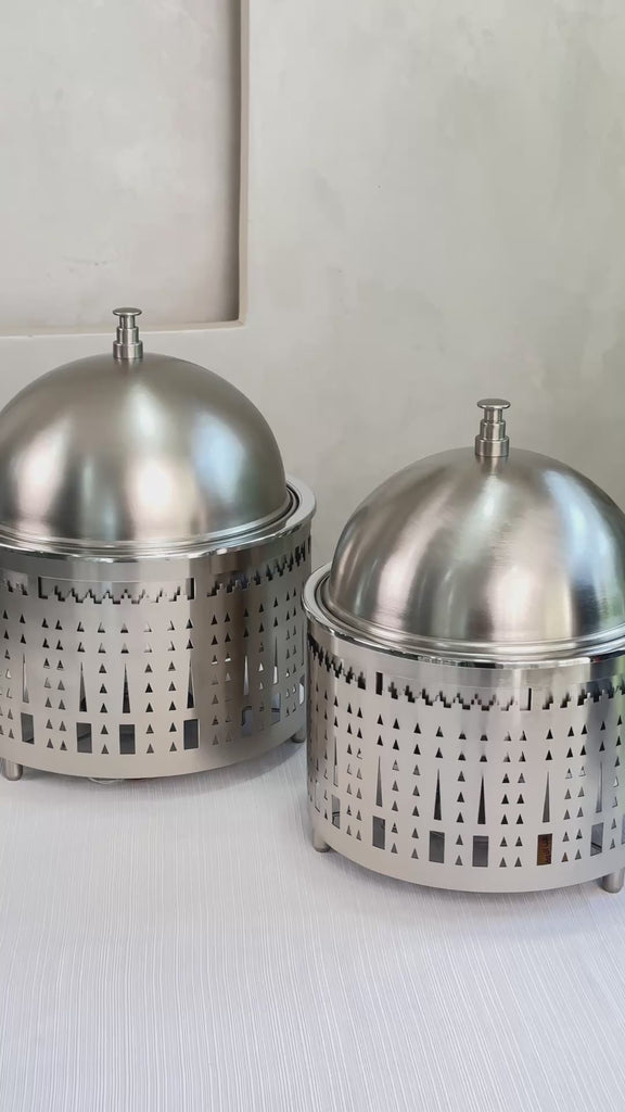 عباره عن وعاء لتقديم الطعام ويبدو انه مصنوع بتصميم معدنى انيق ومزخرف الحجم الكبير5لتر ارتفاع 38سم قطر 32سم الحجم الصغير 3لتر ارتفاع 37سم قطر 28سم قراءة المزيد,,