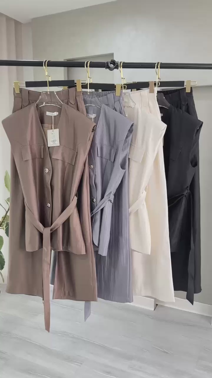 الطقم يتكوّن من قطعتين أنيقتين بتصميم عصري ومتناسق: