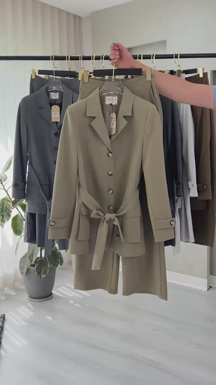بدلة نسائي ازرار و حزام