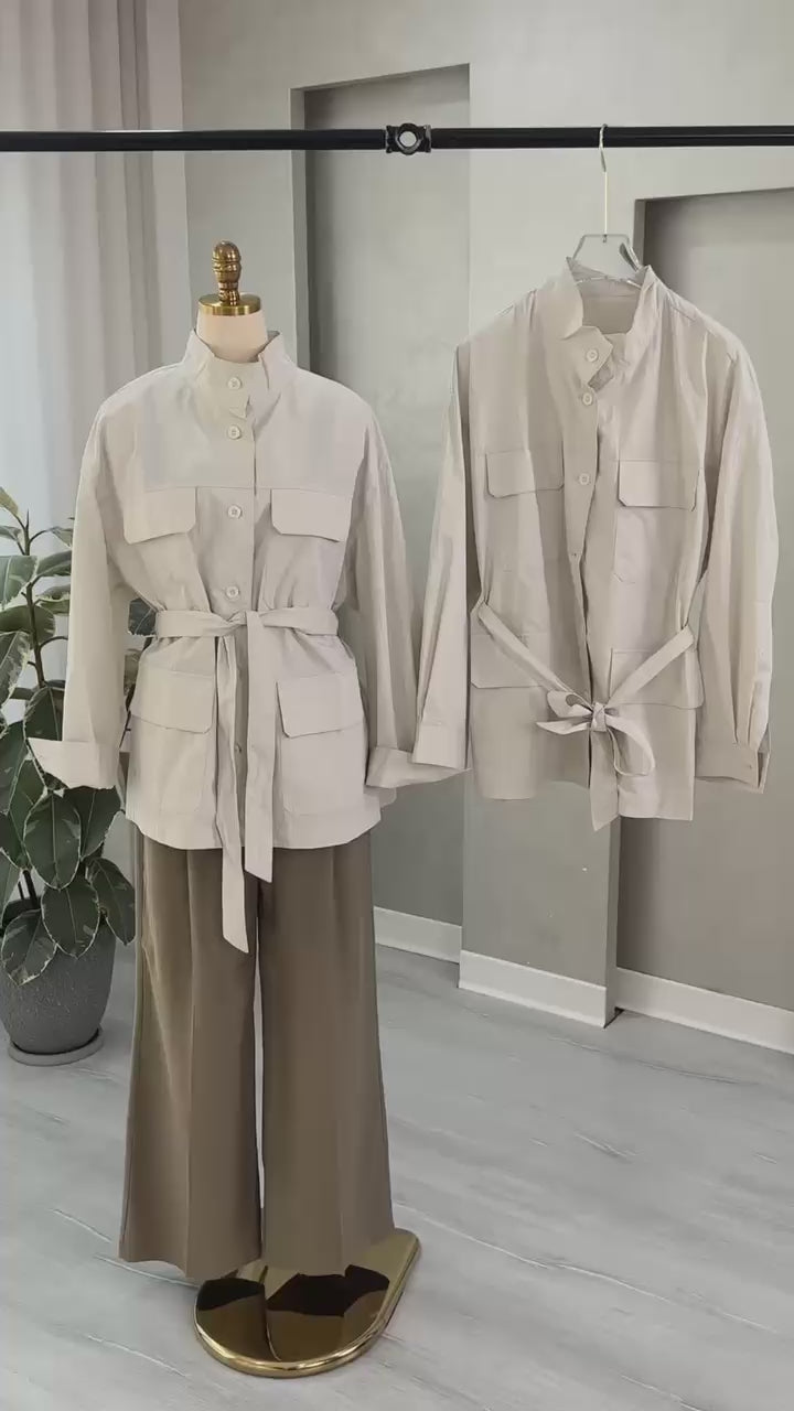 جاكيت نسائي بحيوب وحزام