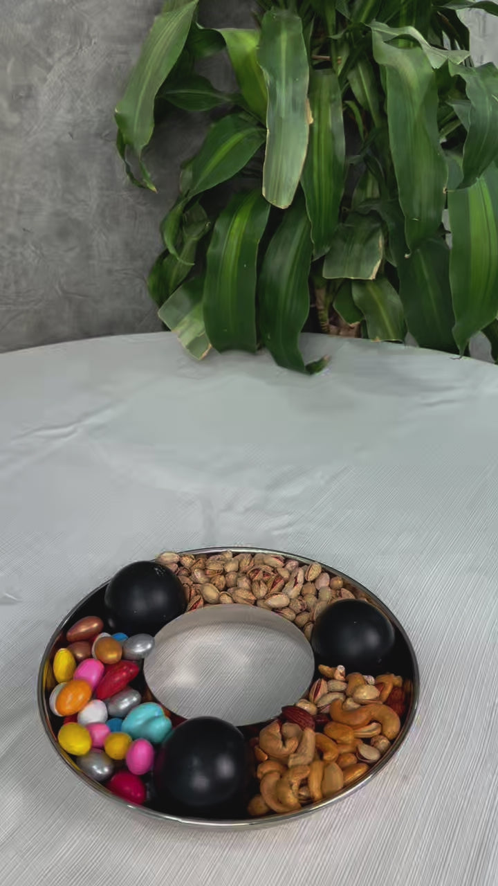 الصينية التي تشاهدها هي قطعة ديكور مبتكرة تجمع بين الأناقة والوظيفة. تتميز بوجود كرات تتحرك بحرية داخل الصينية، مما يضفي عليها مظهرًا ديناميكيًا وجذابًا