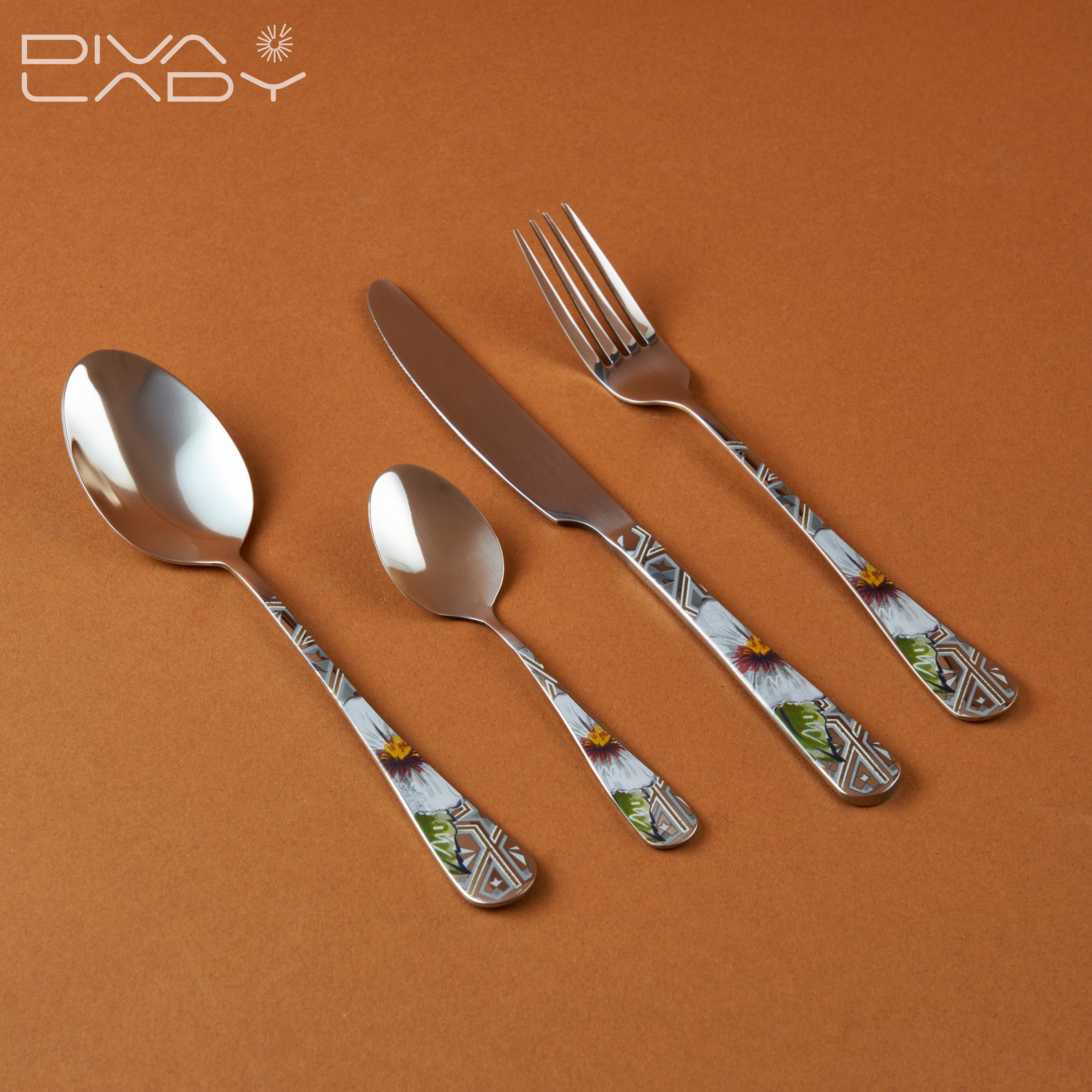 جهّزي طاولة سفرتكِ بكل أناقة باعتماد طقم أدوات المائدة الفاخر هذا يضم 24 قطعة بما في ذلك ملاعق طاولة، ملاعق شاي، شوك وسكاكين